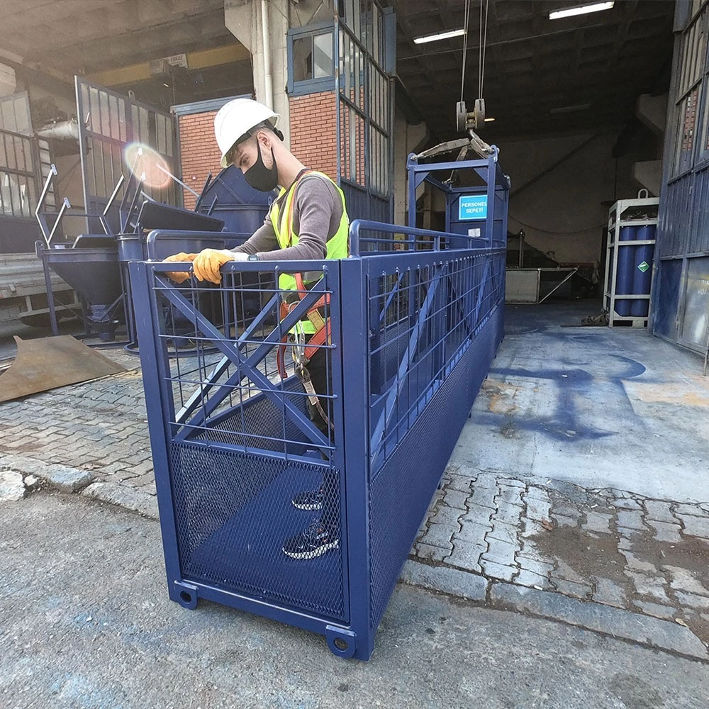 Bayrakçı Metal tarafından geliştirilen insan taşıma sepetleri, güvenlikten ödün vermeyen tasarımı ve uluslararası standartlara uygun yapısıyla şantiyelerde ve inşaat alanlarında personel erişimini en güvenli şekilde sağlar. Dayanıklı yapısı, opsiyonel özellikleri ve özelleştirilebilir üretim seçenekleri ile işletmenizin tüm ihtiyaçlarına cevap verir.